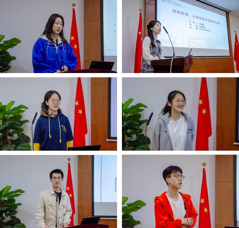 来自交大的魏嘉璐、孙浩成、刘子博同学和我院金昳雨、高雨、李欣茜同学依次分享了自己的科创经历。大家围绕团队协作、研究方向确定、实验设计规划等方面交流讨论。