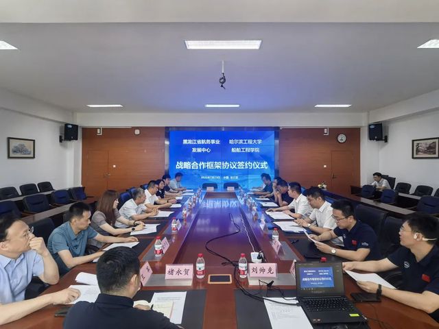 7月23日,哈尔滨工程大学船舶工程学院与黑龙江省航务事业发展中心战略合作框架协议签约仪式在哈尔滨工程大学主楼七楼会议室举行,哈尔滨工程大学党委常委、副校长殷敬伟,科学技术研究院副院长卢熙群,船舶工程学院院长倪宝玉,黑龙江省航务事业发展中心党委书记、主任赵勇刚,黑龙江省航务事业发展中心有关负责人杨光出席签约仪式,会议由船舶工程学院副院长王超主持,船舶学院相关教师及省航务事业发展中心相关部门及直属单位负责人等出席会议。