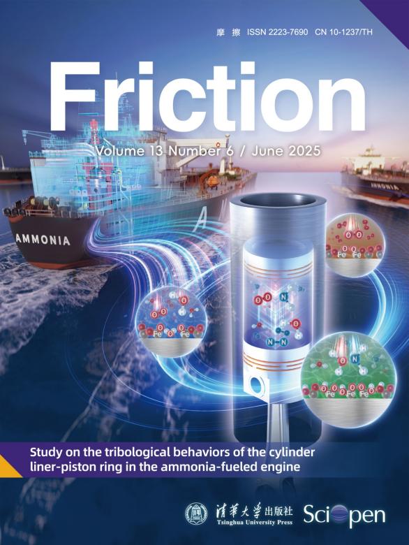 近日,支部船舶设备摩擦学研究中心与中国科学院兰州化学物理研究所、烟台先进材料与绿色制造山东省实验室合作的最新研究成果《氨发动机活塞环-缸套摩擦学行为研究》(Study on the tribological behaviors of the cylinder liner-piston ring in the ammonia-fueled engine)登上摩擦学顶级期刊《摩擦》(《Friction》)封面。