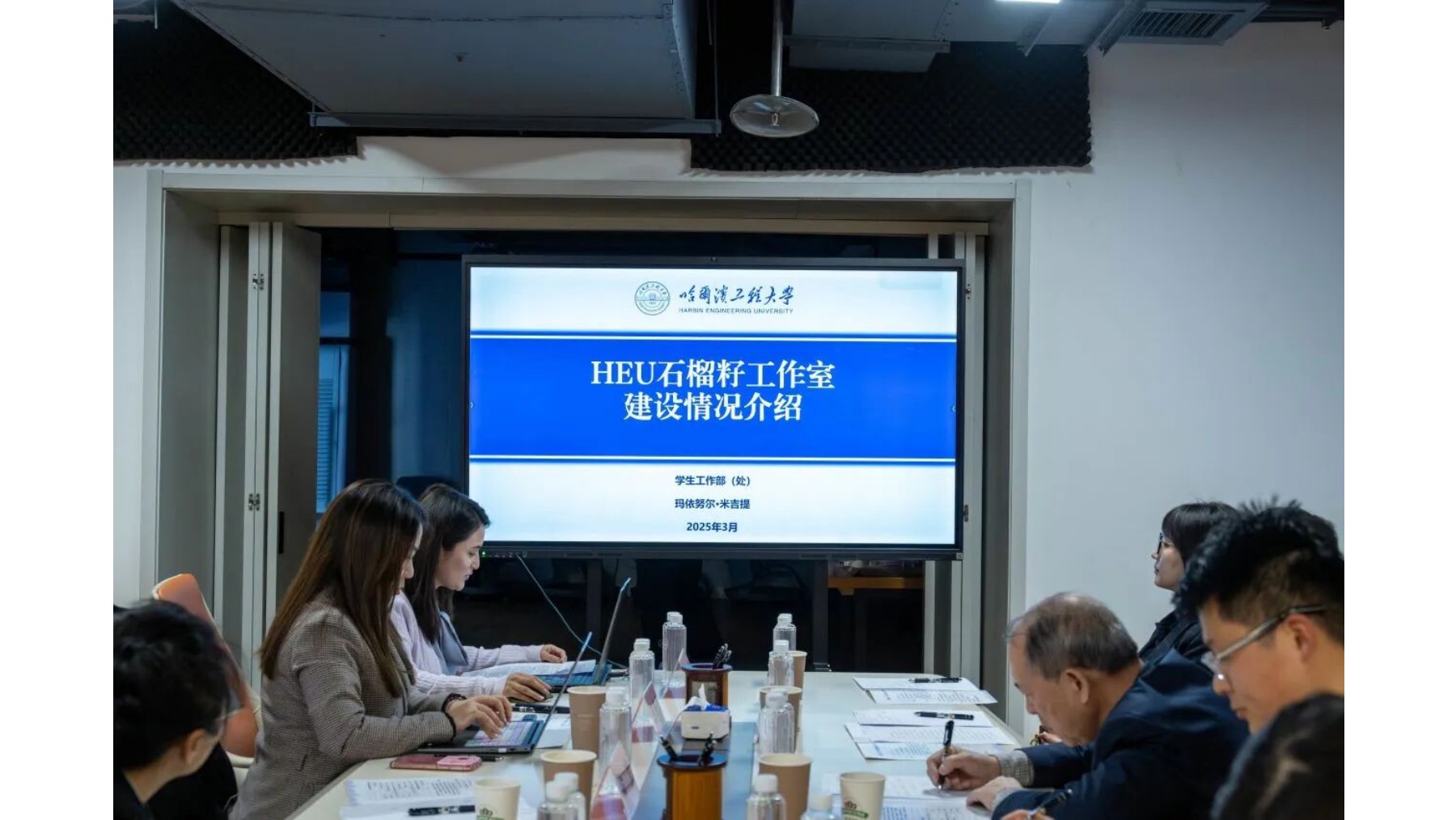 HEU石榴籽工作室主持人玛依努从工作室基本情况、建设举建设成效等方面进行汇报,介绍了工作室提高民族学生工作全员意识、解决民族学生急难愁盼问题、打造特色精品形成示范引领的建设目标,从工作室公众号建设、帮扶机制、以及打造校园文化经典品牌等方面介绍了建设举措,最后对工作室未来发展进行了展望。