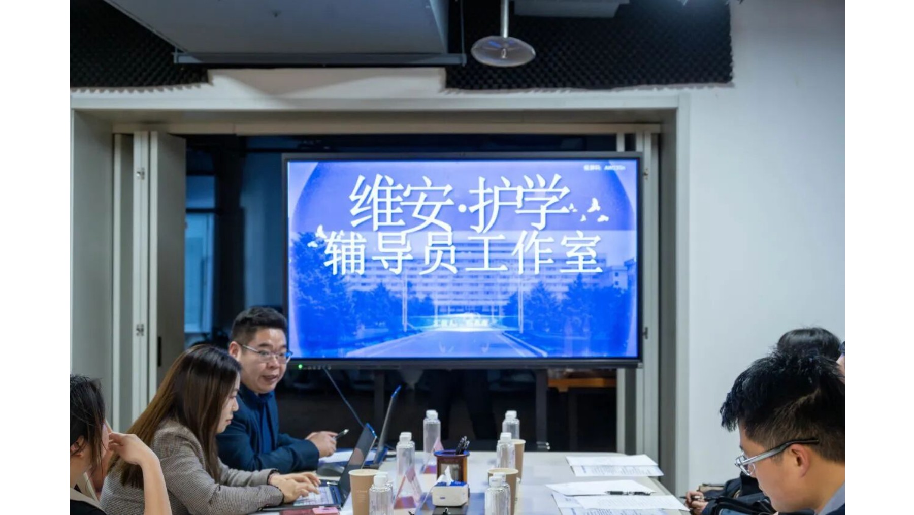 “维安·护学”辅导员工作室主持人杨森森从工作室建设背景、具体举措、未来展望三个方面进行汇报,介绍了工作室的舆情原因探索、AI赋能监测、多方联动护航、辅导员团队发展的“四位一体”工作体系,从全面学习、AI赋能、明晰方向三个方面对未来进行展望。