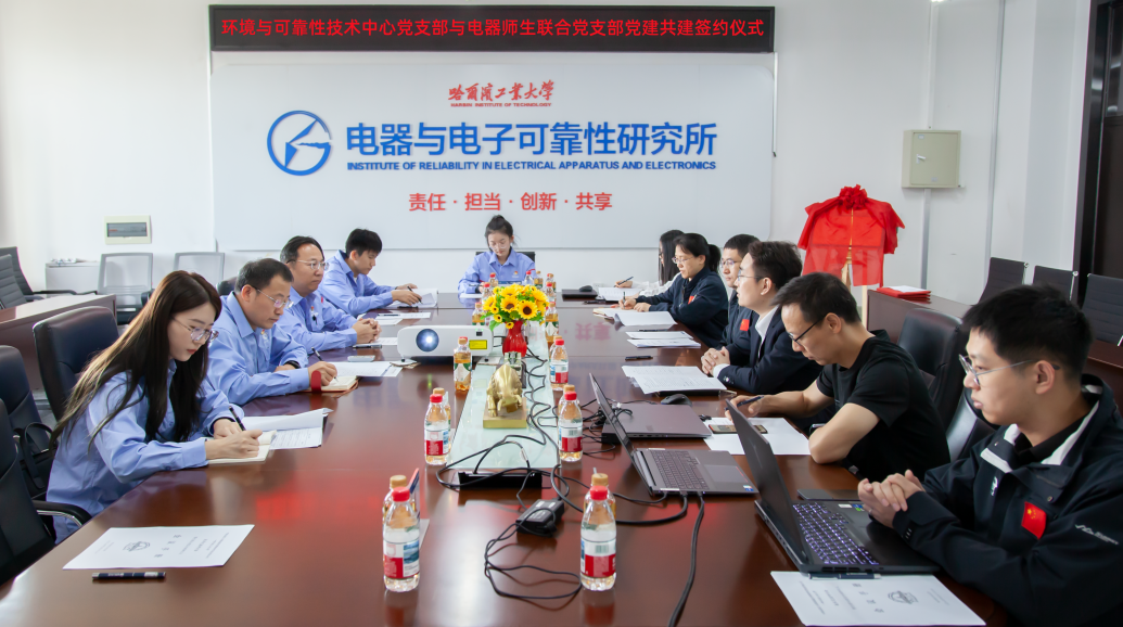 出席签约仪式的有环境与可靠性技术中心党支部书记董长友、室主任韩旭东及工程师黄小兰等技术骨干,还有电器师生联合党支部书记杨文英教授、副书记李智超教授,哈工大电器与电子可靠性研究所副所长周学教授、梁慧敏教授等专家学者,实现 “企业实践优势 + 高校科研优势” 的精准对接,为搭建 “党建引领、双向赋能” 的新格局奠定坚实基础。