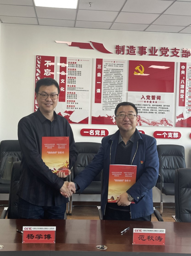 为深入贯彻落实习近平新时代中国特色社会主义思想和党的二十大精神,进一步强化党建工作成效,推进党建和业务工作深度融合,航天学院智能控制与系统研究所教师党支部与中电集团第四十九研究所制造事业党支部于2024年12月18日共同举办支部共建签约仪式,组织开展了共建主题党日活动。四十九所制造事业党支部书记范秋涛、智控所教师党支部书记杨学博及双方党员代表共同参与。