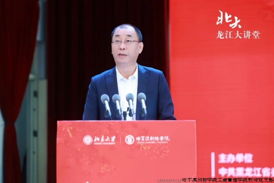 在“北大龙江大讲堂”启动仪式上,黑龙江省委教育工委副书记王震致辞时表示,“北大龙江大讲堂”的正式启动,是学习贯彻习近平总书记视察龙江期间重要讲话重要指示精神的具体行动,也是深化我省与北京大学战略合作、携手推动教育科技人才融合发展的生动实践,更是哈尔滨剑桥学院与北京大学长期、深度结对共建形成的丰硕成果。省委教育工委将高度重视并持续办好“北大龙江大讲堂”,让思想在这里碰撞,让创新在这里萌芽,让人才从这里成长,把大讲堂打造成省校战略合作的典范与品牌。同时,也将立足教育职能做好各项工作,加快省校战略合作在教育系统落地见效,为北大各类人才、科研团队和创新型企业在龙江发展做好服务保障,画出校地、校企、校校合作的“最大同心圆”。