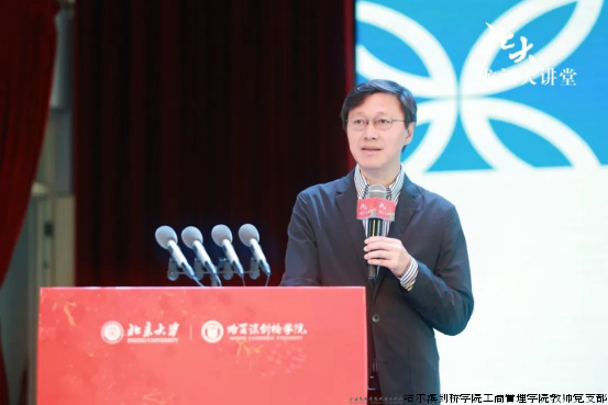 北京大学党委副书记、党委统战部部长姜国华致辞时表示,为深入学习贯彻习近平文化思想,深化北京大学与黑龙江省的校地战略合作,在学校党委和省委教育工委的大力支持下,北京大学社会科学部和哈尔滨剑桥学院共同打造了以人文社科领域为主的“北大龙江大讲堂”高端系列讲座。“北大龙江大讲堂”将依托哈尔滨剑桥学院开展,广泛辐射哈尔滨其他高校,满足龙江人民高品质的精神文化需求,充分发挥北京大学人文社会科学学科优势,汇集知名专家学者智慧,围绕前沿基础理论与重大现实问题,开展深入交流研讨,促进学术资源共享与文化传承创新。未来将以讲堂举办为契机进一步加强合作,助力校地合作取得更多成果,为龙江大地注入新的思想活力,为新时代东北全面振兴提供智力支持。