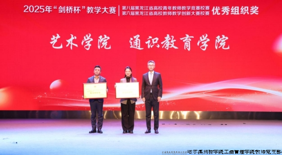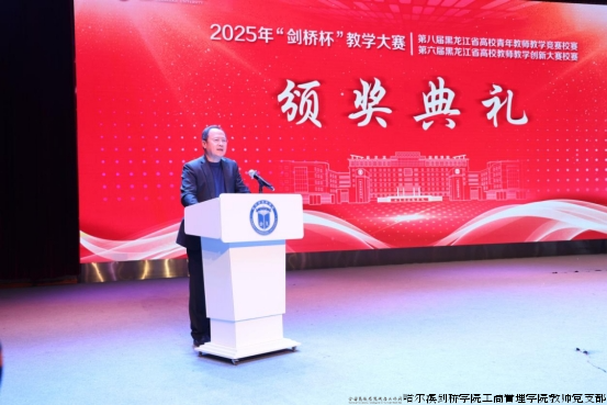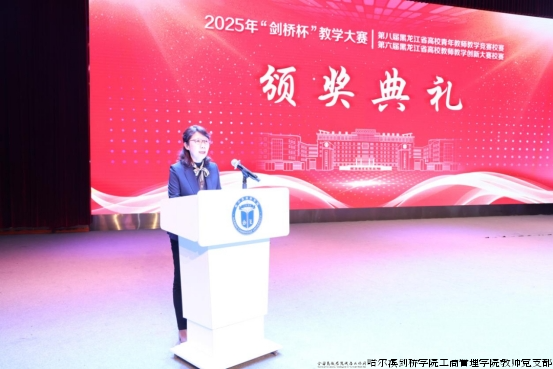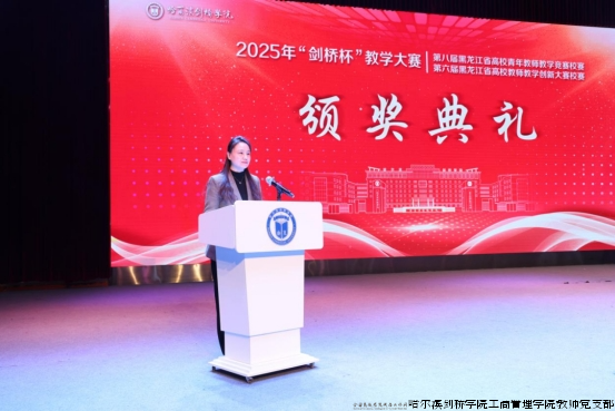 颁奖典礼伊始,现场播放赛事纪实短片,全景回顾本次教学大赛的关键环节与精彩瞬间,集中展现了获奖教师深耕教学一线的育人初心与职业感悟。樊千宣读获奖教师及优秀组织单位名单,学校领导为荣获优秀组织奖的单位及获奖教师代表颁奖。