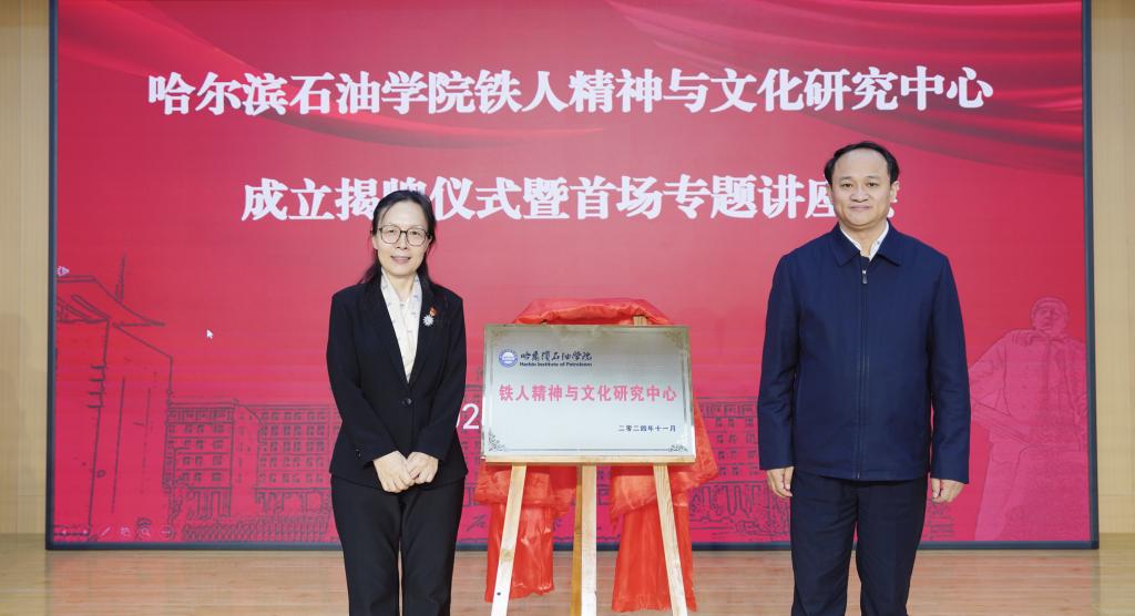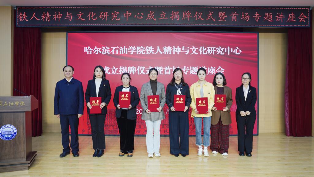 会上,研究中心主任、刘铎副书记宣读《关于成立哈尔滨石油学院铁人精神与文化研究中心的决定》。这份文件不仅标志着研究中心的正式成立,也承载着哈油师生对铁人精神研究与传承的坚定决心和殷切期望。
