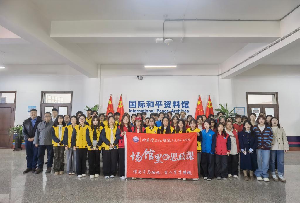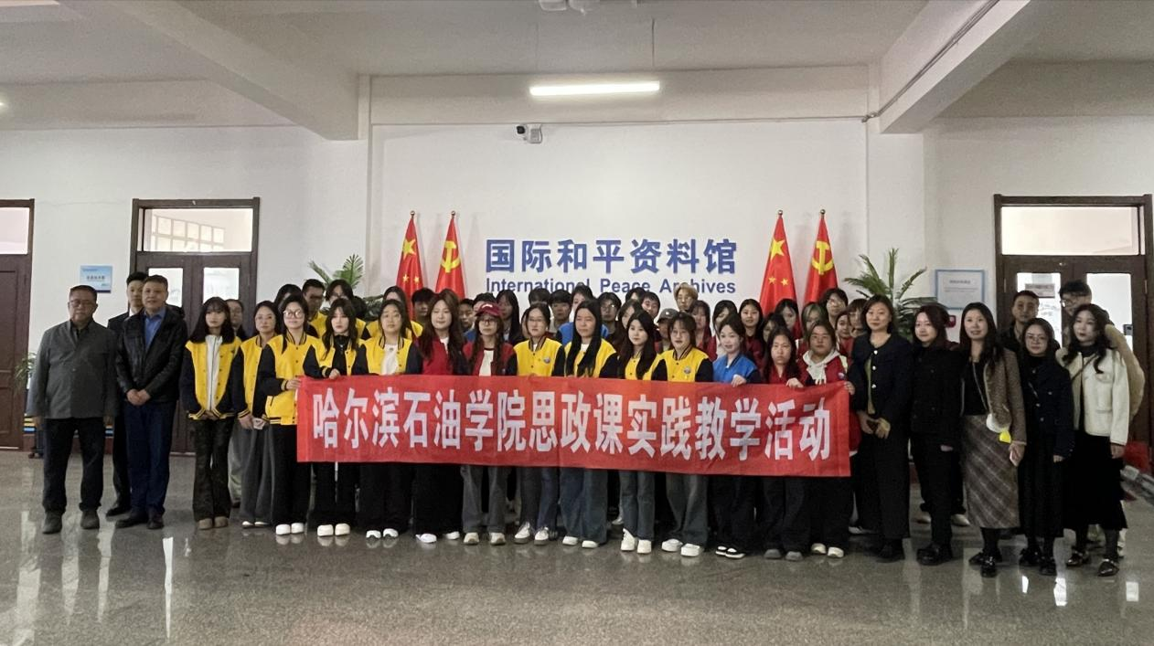 为推动思政小课堂与社会大课堂相结合,思政课程与课程思政协同育人,增强思政课实践教学的感染力和育人成效,2025年4月15日,哈尔滨石油学院马克思主义学院“行走的思政课”走进黑龙江外国语学院国际和平资料馆。