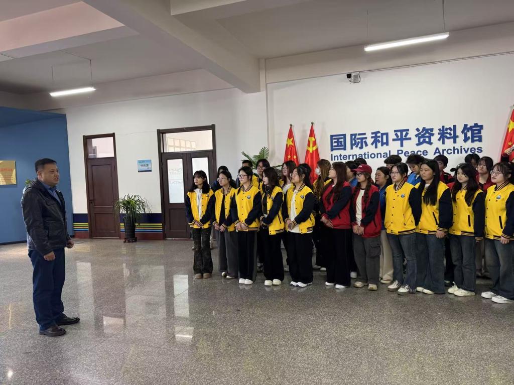 活动中,黑龙江外国语学院副校长、国际和平资料馆馆长焦洪双对国际和平资料馆兴建与作用作了详细介绍。国际和平研究中心负责人于永杰担任此次实践课的主讲教师,运用专业知识与研究经验,深入浅出地讲解,为学生勾勒出清晰的历史脉络。
