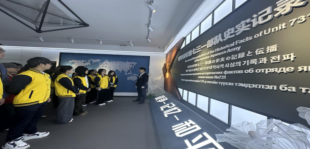 在馆内,同学们认真聆听讲解员和主讲教师对“国家犯罪部队编成”“人体实验细菌攻击”“逃脱审判战后追踪”等部分的详细讲解,深入了解侵华日军的残暴罪行,引导同学们思考历史与和平的深刻内涵。