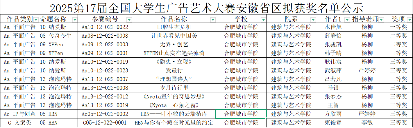 合肥城市学院建筑与艺术学院学子在第17届全国大学生广告艺术大赛安徽赛区斩获佳绩