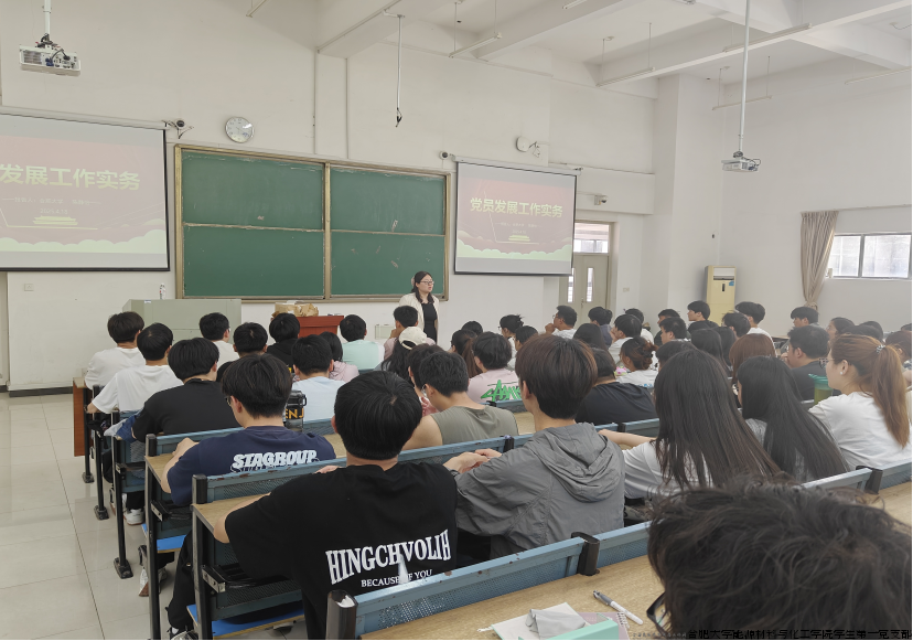 为深化青年学生对党员发展流程的认知,筑牢理想信念根基,2025年4月18日,材化学院二十二期分党校第一次授课聚焦“发展党员工作实务”主题,面向80名入党积极分子开展专题培训。本次培训以理论讲解、案例剖析、实践互动相结合的方式,系统梳理党员发展全流程规范,助力学员扣好政治成长的“第一粒扣子”。