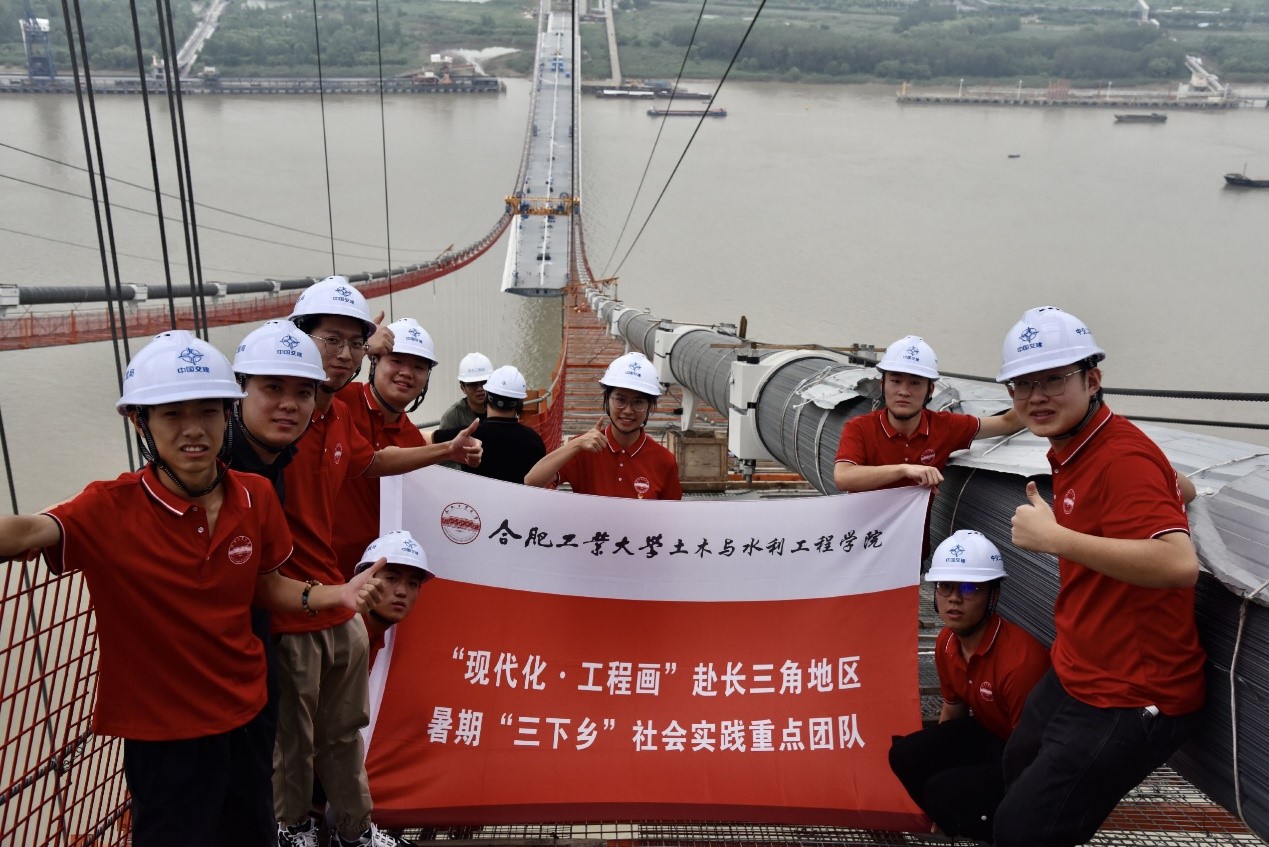 水映山河续航迹,共筑未来梦飞翔。7月15日,学院师生一行前往南京市中交二航局四公司仙新路长江大桥工程项目部,在项目党支部书记饶曦的带领下,踏入仙新路长江大桥展馆参观学习。仙新路长江大桥项目预计于2024年建成通车,对于提升南京首位度,实现南京拥江发展,进一步提升长江干线过江能力、完善区域路网体系具有十分重要的意义。随后,师生们登顶了263.8米高的桥梁主塔,登临长虹之巅,独步长江之滨。这一场高空中开展的“大工程里的思政课”使同学们亲身体会了工程建设者们凭借刻苦钻研、开拓进取的创新精神所缔造的工程奇迹,深刻认识到技术引领创新,匠心铸就品质,唯有努力学习专业知识,才能尽早投入到“大国工程”的建设实践中去,成为堪当民族复兴大任的时代新人。
