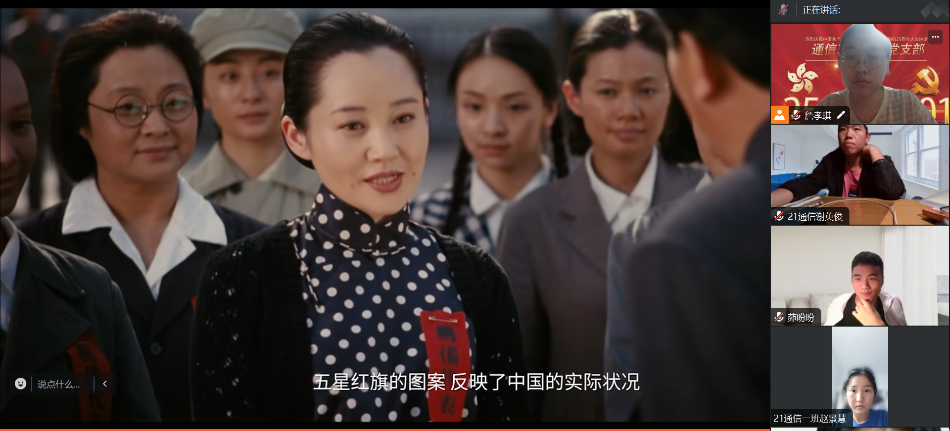 栉风沐雨,初心不改,砥砺奋进,再续华章。为深入学习贯彻习近平新时代中国特色社会主义思想,弘扬爱国主义精神,加强革命传统教育,进一步增强党支部不忘初心、实干担当、奋发有为的自觉性、主动性以及责任意识和爱国情怀,增强党员身份意识,增强党员的归属感、荣誉感,引领党员同志更加自觉地感党恩、听党话、跟党走,先进制造工程学院通信工程学生党支部于10月5日晚7点组织全体党员和积极分子进行红色电教片《建国大业》的观看与学习。