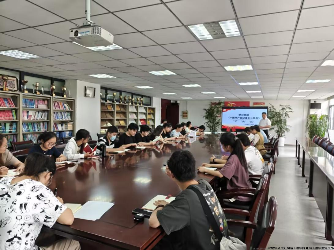 为了提高年轻党员的守纪意识,确保党员的先进性和纯洁性,在2024年6月11日,合肥大学先进制造工程学院胡国华院长就学习贯彻《中国共产党纪律处分条例》“纪”“尺”“己”为主题开展党课教育活动。