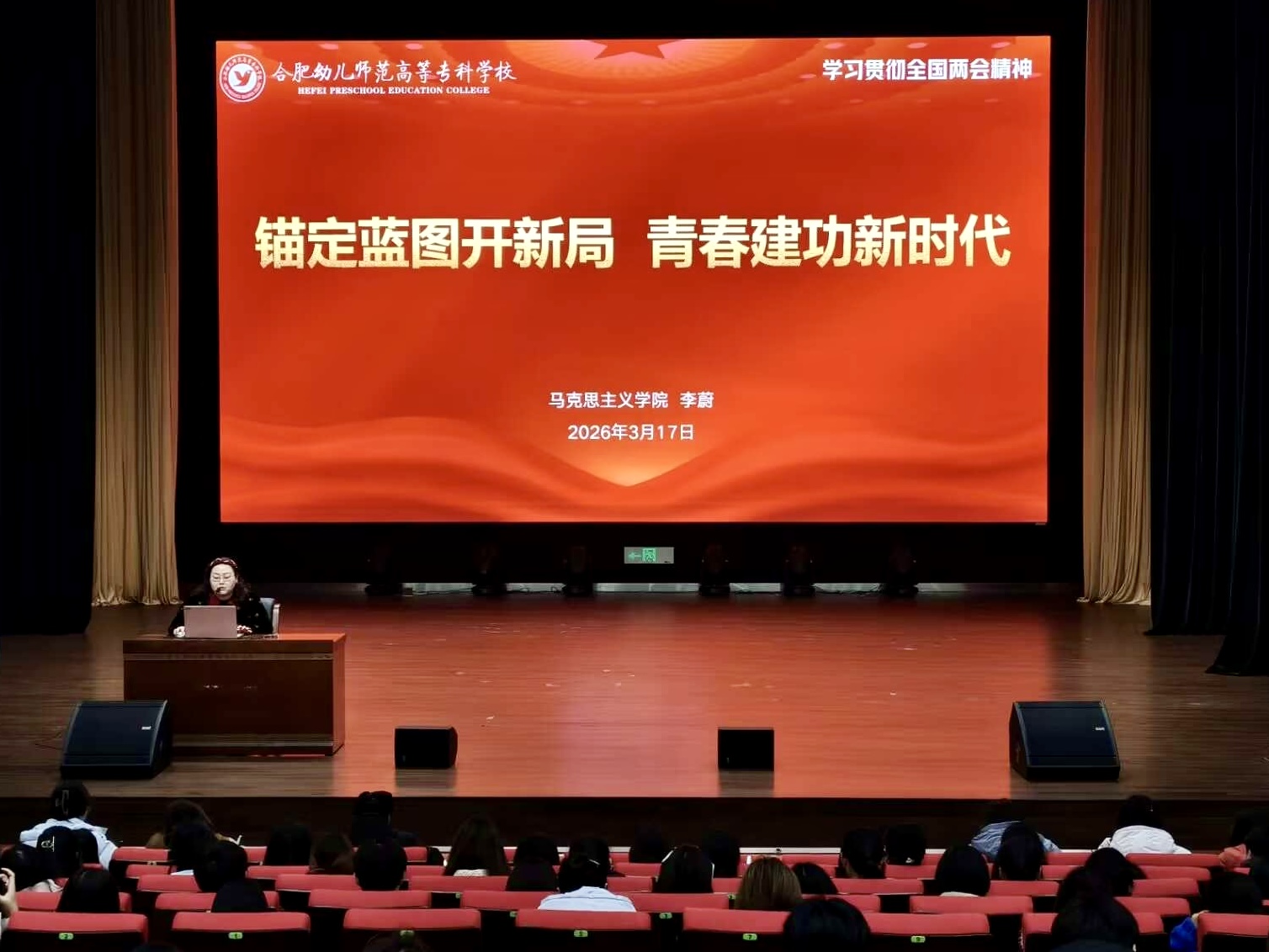 青春奋进新征程,共话发展向未来。近日,我校第十三期青马班理论第二讲于少荃湖校区白石剧场举行,由马克思主义学院第一党支部党员李蔚主讲。