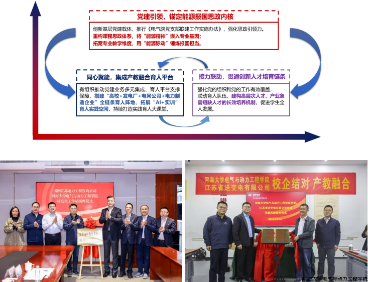 河海大学电气与动力工程学院以入选教育部“教育强国建设三年行动计划立德树人机制综合改革试点院系”为契机,以党建引领凝心铸魂,把握人才培养“基本盘”、下好资源“盘活棋”、跑出发展“加速度”,实现多项突破,展现出高质量内涵式发展的良好态势。