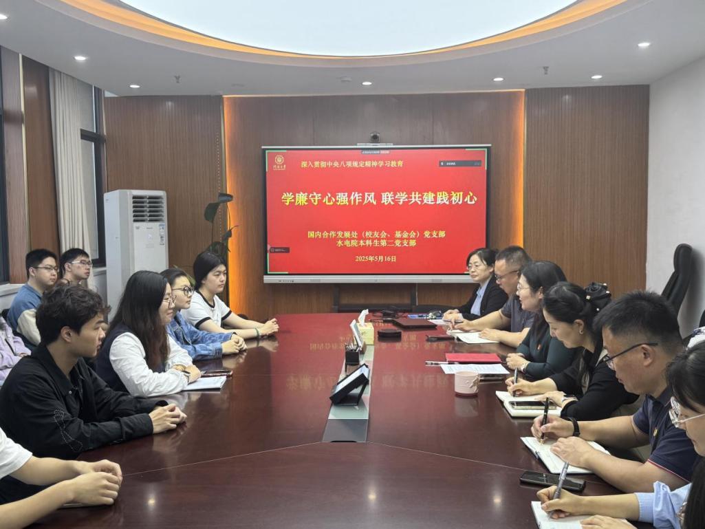 为深入贯彻中央八项规定精神学习教育, 5月16日,我院本科生第二党支部与国内合作发展处(校友会、基金会)党支部联学联建,共同开展“学廉守心强作风,联学共建践初心”主题党日活动。党日活动以“理论学”与“实地走”相结合形式开展,分为支部书记讲党课和赴南京溪田勤廉教育基地参观学习两个部分。河海大学国内合作发展处(校友会、基金会)党支部书记赵冰、河海大学水利水电学院本科生第二党支部书记帅雨婷、两支部党员代表参与。