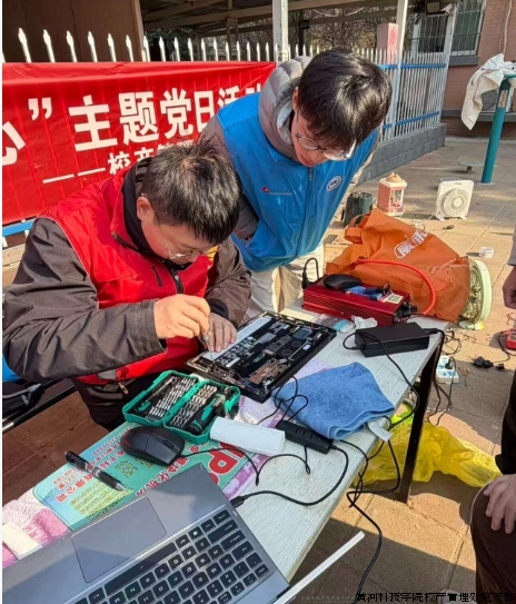 上午10点,志愿服务环节在教职工住宅小区广场正式启动。全体党员佩戴党员徽章,精神饱满地投入到义务维修活动中。活动现场,由校产管理处党员组成的服务团队分工协作、热情服务。他们耐心接待前来咨询的教职工及家属,细致登记电器、电脑等故障信息,运用专业知识与技能,认真开展故障诊断与维修。从电脑系统优化、硬件排查到家用电器、儿童玩具的简易维修,服务团队力求为教职工解决生活中的实际困难。党员同志们率先垂范,将技术服务于生活需求,以实际行动诠释了共产党员的先锋模范作用,传递了党组织的关怀与温暖,现场氛围热烈而有序。