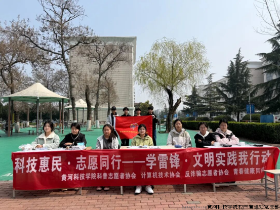 春风送暖,志愿同行。3月10日至13日,正值学雷锋活动月,黄河科技学院南校区康乐园内人头攒动,热闹非凡。校产管理处党支部组织多个社团联合举办的“科技惠民·志愿同行——学雷锋·文明实践我行动”科技志愿服务主场活动在此拉开帷幕。本次活动打破单一社团“单兵作战”的传统模式,集结多个学生社团强强联手,打造“一站式”志愿服务集市,为全校师生带来了一场科技与爱心交织的“知识盛宴”。