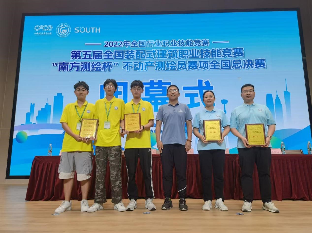 6月4日,2022年全国行业职业技能竞赛——第五届全国装配式建筑职业技能竞赛“南方测绘杯”不动产测绘员赛项全国总决赛在广州落幕,我院师生斩获职工组团体冠军和学生组团体亚军的好成绩!两位教师黄飒、陈旭分别获得个人赛亚军和季军,在报请人力资源和社会保障部核准后,两位老师将被授予“全国技术能手”荣誉称号。学生组参赛选手王泽宇、范豪、楚世钊同学,沉着稳定、发挥出色,亦获得团体亚军和团体一等奖的好成绩。