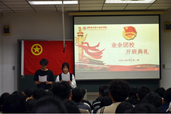 2025年3月24日,测绘工程学院在JX6303举行2024-2025学年第二期业余团校开班典礼,分团委书记杜文志与团校培训学生共同参加。