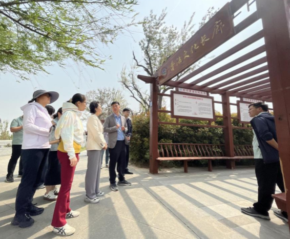 我校优秀毕业生、开封第一黄河河务局副局长李国顺与水政监察大队专职副大队长田国茂全程陪同,讲解黄河治理史,并带领教师党员参观党史文化长廊,他们以“幸福桐”“镇河铁犀雕塑”等景观为引,讲述黑岗口从险工段到生态示范区的变迁。在普法文化长廊,带领大家学习《中华人民共和国黄河保护法》等相关法律法规,激励同志们传承治黄精神,保护母亲河。