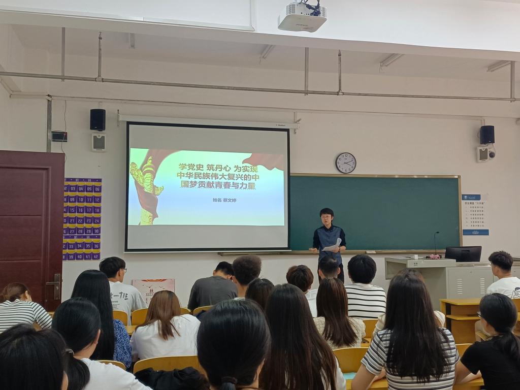 文学院副院长蔡文婷“学党史,筑丹心,为实现中华民族伟大复兴的中国梦贡献青春力量”为题的党课,针对开展党史学习教育的重大意义、党史学习教育的目标要求以及党史学习的重点内容等问题,结合大学生学业规划、专升本等学生普遍关心的问题和学生进行了深入的交流。