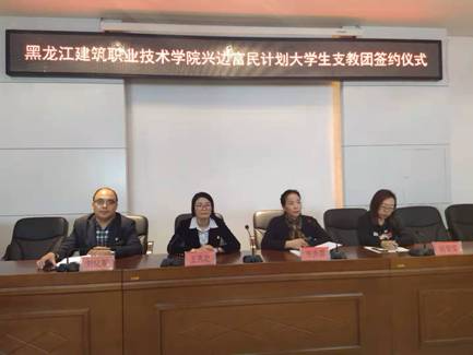 10月23日12:30,学院在鲁班楼十二楼会议室举行黑龙江建筑职业技术学院2019年兴边富民计划大学生支教团签约仪式。学院党委委员、副院长张秀霞出席并讲话。学工部部长、团委书记王秀艳,学工部相关老师,以及干训班部分学员参加签约仪式。