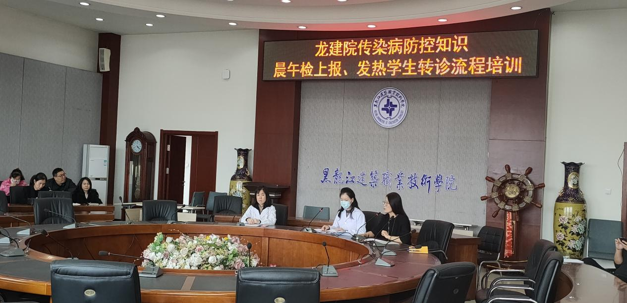 按照上级部门的要求,为做好新冠肺炎常态化防控、春季传染病防控工作,普及传染病防控知识,提高广大师生防控意识,2021年3月25日下午14时至15时在学院馨园三楼会议室,由学生工作部、后勤管理处联合举办了传染病防控知识、晨午检上报、发热学生转诊流程培训讲座,后勤管理处卫生所医生刘英慧、尹丽娜对传染病防控知识及相关要求进行了讲解。讲座由学生工作部部长王秀艳主持,团委副书记胡莹莹、各系团总支书记和辅导员参加了此次培训。
