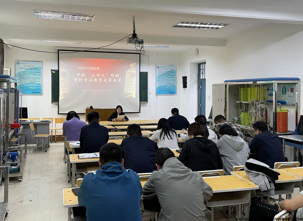 近日,智能制造技术学院教师第二党支部开展《下好“三功夫”推动党纪学习教育走深走实》的党纪学习专题党课,由党支部书记鲍敏主讲。