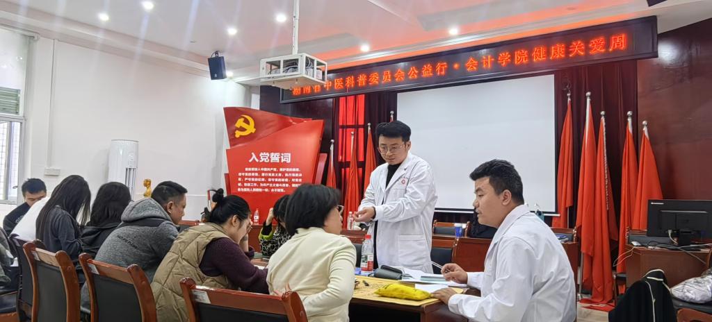 为积极践行党建引领服务师生的工作理念,弘扬中华传统医学文化,切实提升师生健康素养,11月24日至12月5日,湖南财经工业职业技术学院会计学院牵头组织,特邀湖南省中医药文化科普专业委员会成员伍声平、谌文韬两位中医专家来校,开展“党建领航护健康,医校同心育新人”主题中医科普宣传与健康服务活动,将健康关怀送到师生身边。