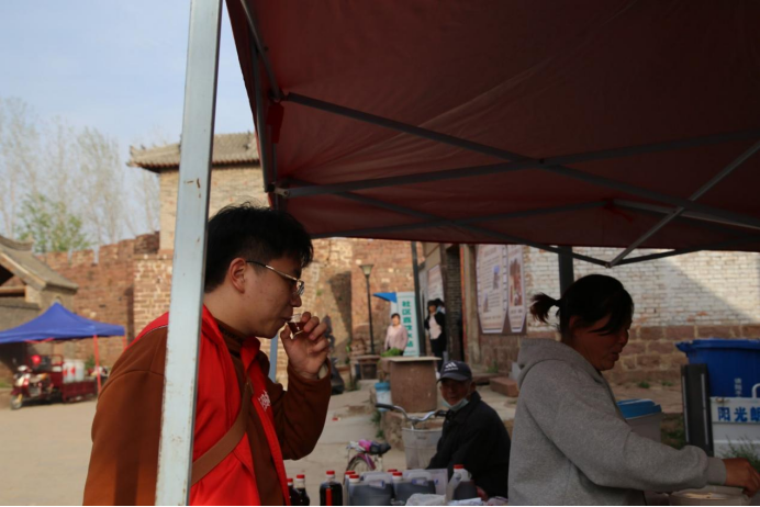 图为党员同志认真听取村民讲解翟集香醋历史并品尝翟集香醋