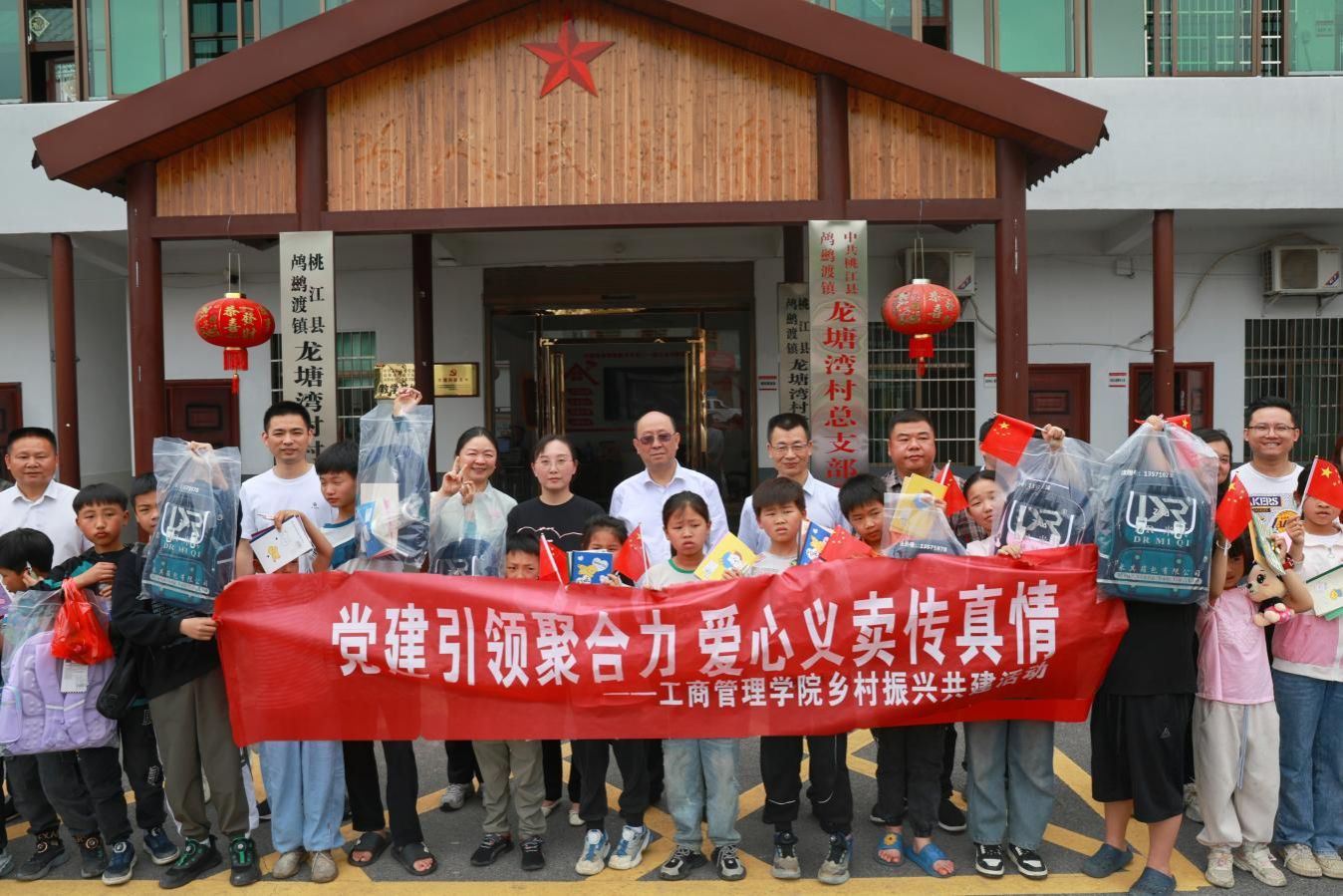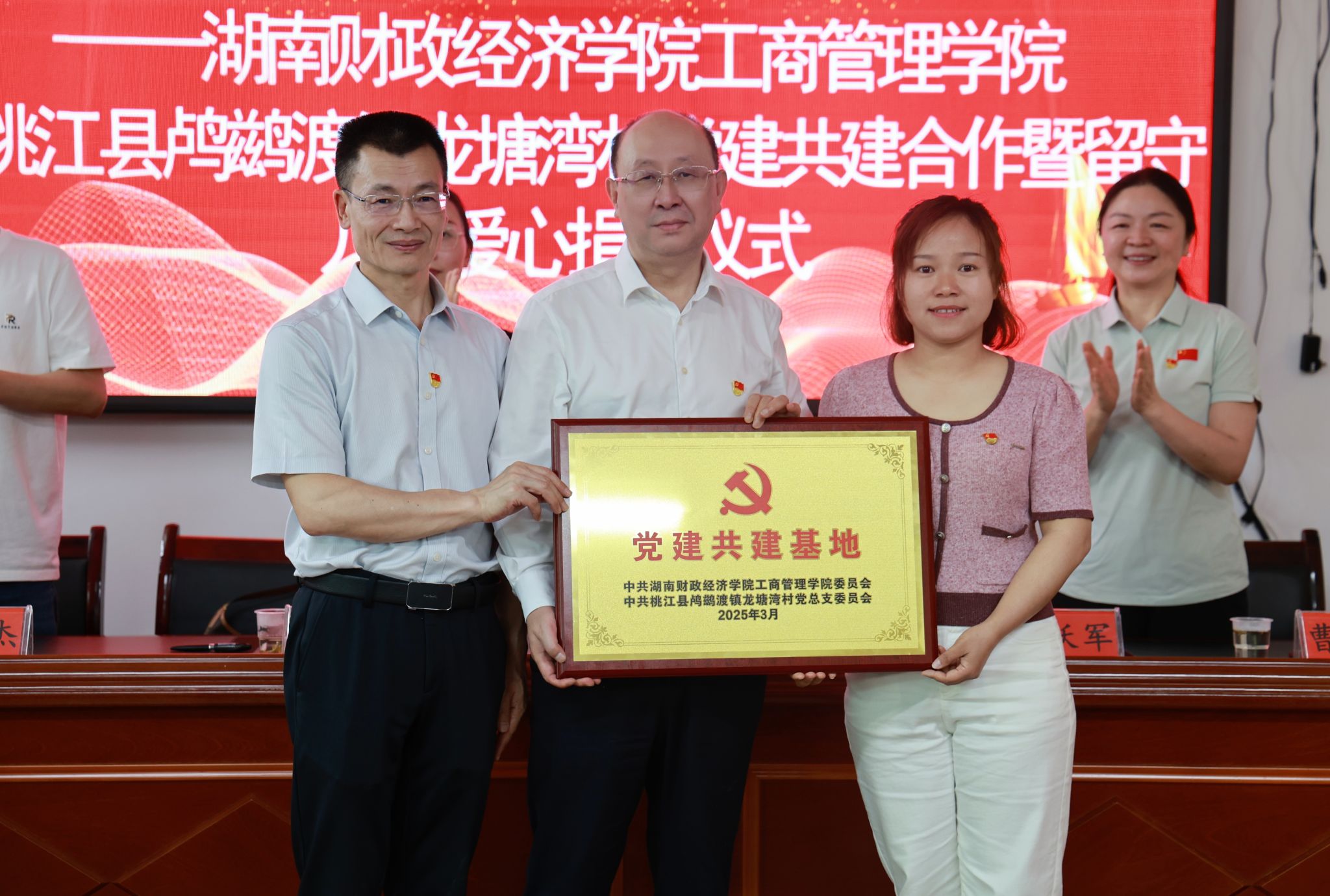 在桃江县龙塘湾村,工商管理学院与龙塘湾村委举行“党建共建基地”授牌仪式。赵鹤平表示,此次党建共建旨在以党建为引领,整合校地资源,实现优势互补,助推乡村振兴。活动现场,工商管理学院向龙塘湾村留守儿童捐赠了书包、文具、图书等爱心物资。工商管理学院党委书记王跃军表示,学院将依托党建共建基地平台,组织师生党员开展教育帮扶、社会实践等合作项目,以实际行动助力乡村教育事业蓬勃发展。
