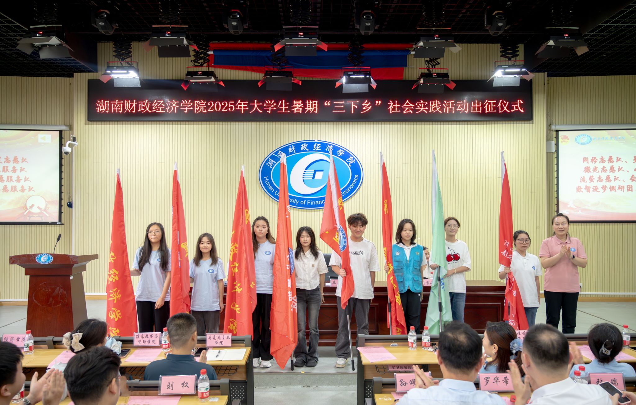 6月26日下午,湖南财政经济学院2025年大学生暑期“三下乡”社会实践活动出征仪式在二教学楼2J03学术报告厅举行。校党委副书记苏玲出席并作动员讲话。校团委、人事处、相关二级学院负责人,实践队指导老师及队员参加仪式。仪式由团委书记刘天浩主持。