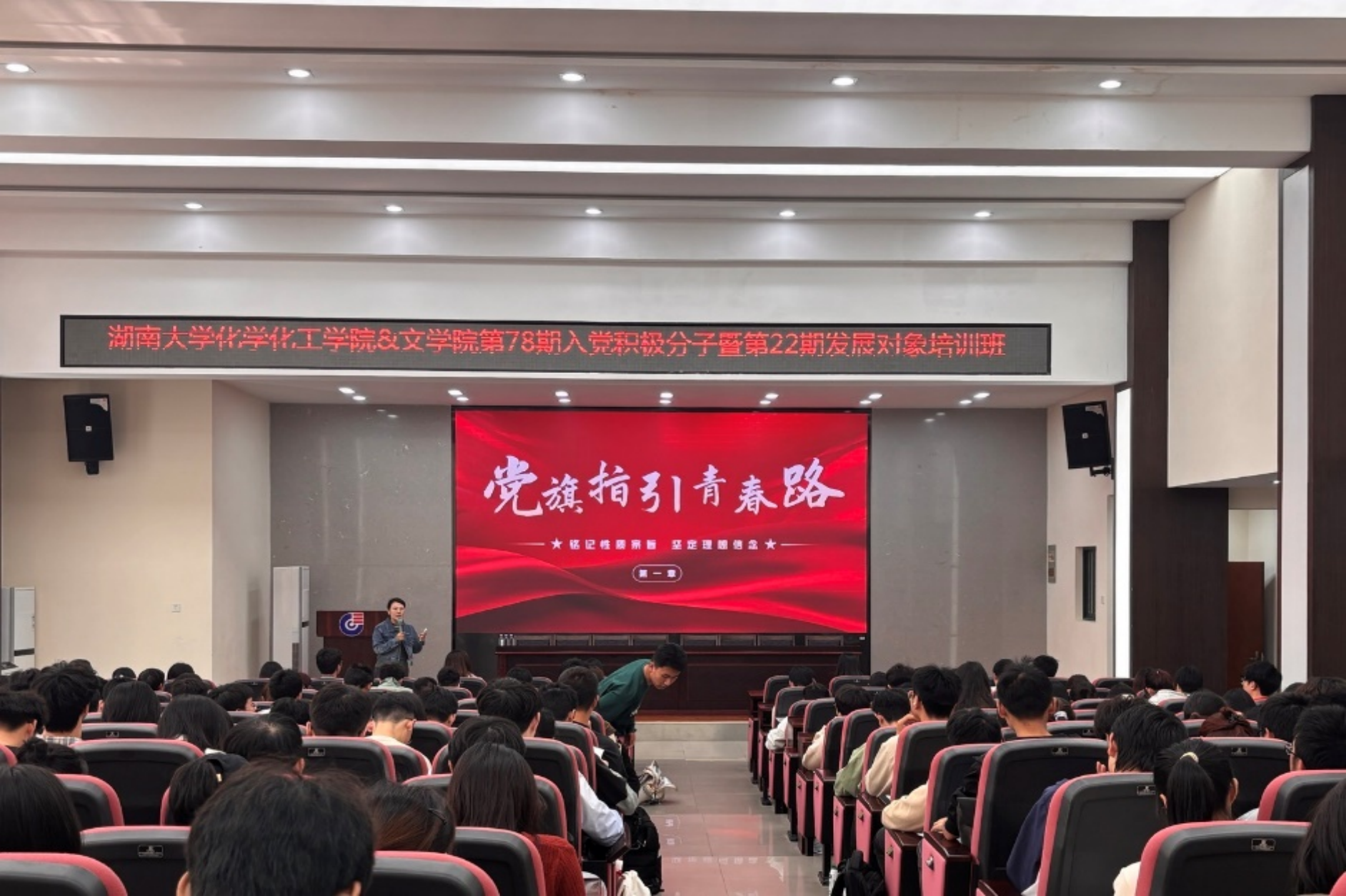 旗飘扬,青春奋进,湖南大学化学化工学院党委积极行动,为深入学习和贯彻党的二十大精神,进一步加强入党积极分子的培养教育工作,提升其思想政治素质和党性修养,2025年3月19日至4月7日,为期三周的《党旗指引青春路》党课培训如约而至。