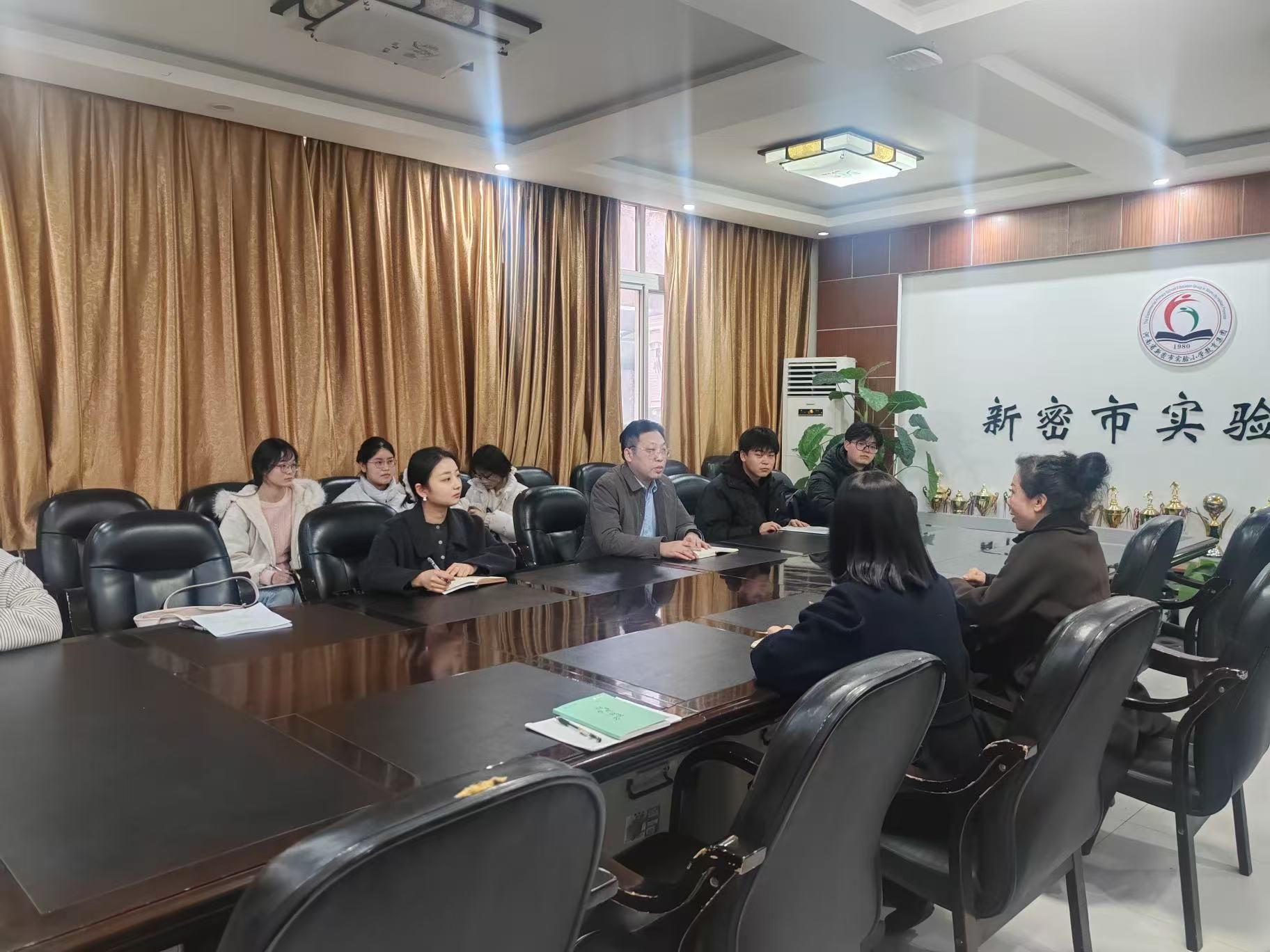 2026年3月9日,7位教育学专业本科生在教育学院赵慧臣副院长、蔡婉怡老师的带领下走进新密实验小学,开始为期8周的集中实习。会上,赵慧臣表示,实习生要主动向实习指导教师虚心请教,认真学习课堂教学技巧与班级管理等实践经验,并且叮嘱同学们务必重视实习期间的各项安全事宜,希望同学们在本次实习中收获满满、学有所成。
