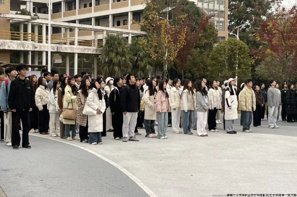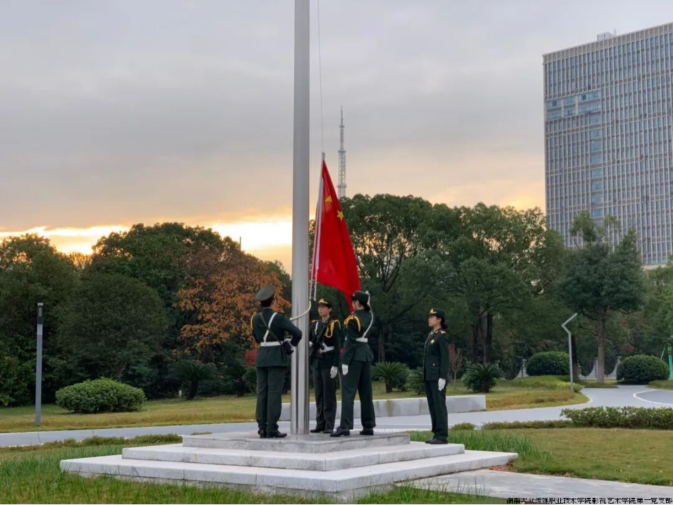 近日,影视艺术学院举行“以青春担当为船桨,以品德修养做舟己”主题升旗仪式。学院党总支书记徐可晶、副书记黄丽娟、学工办主任马晓芳及全体专兼职辅导员、 团学会干部、播音与主持专业2501、2502班学生参加。