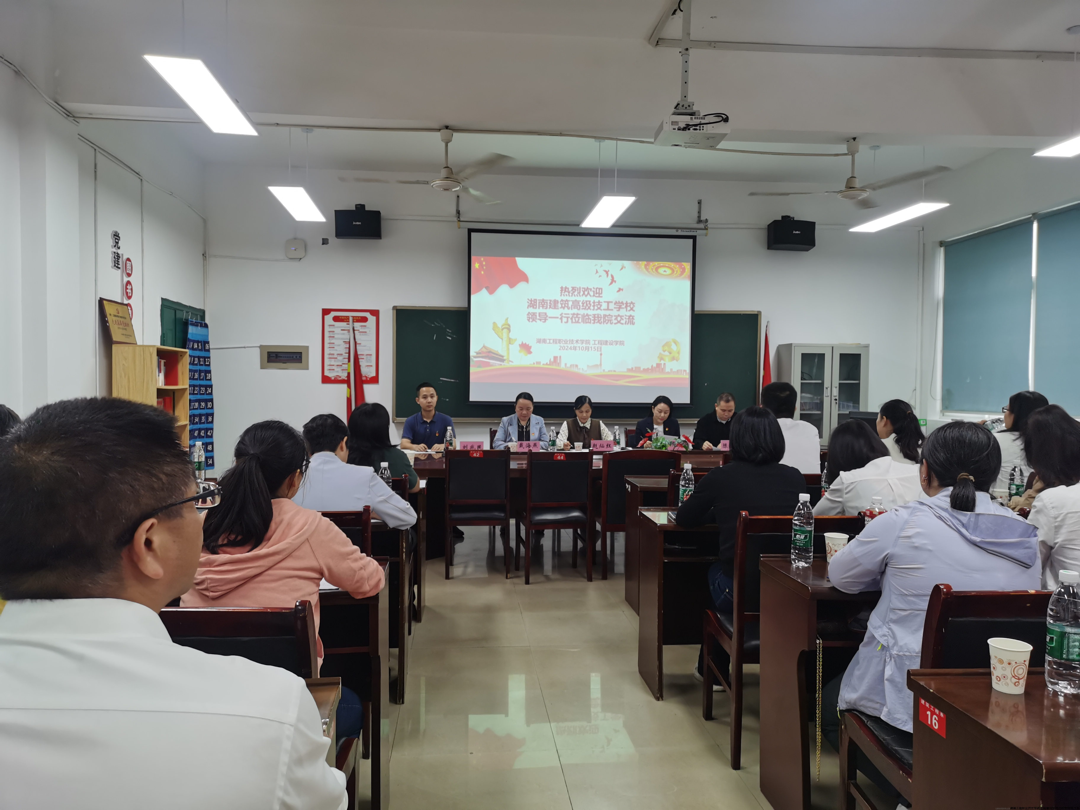 在双方交流环节,与会人员就党建工作和专业建设进行了深入讨论,互相学习借鉴,共同探索党建工作与专业建设的融合之道。交流结束后,与会人员参观了湖南工程职业技术学院工程建设学院的虚拟仿真实训室、廉洁教育文化基地、三全育人基地等,实地感受了学校学院在实训教学和文化建设方面的特色和优势。