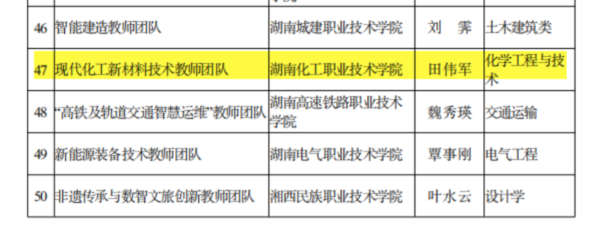 喜报:我院现代化工新材料技术教师团队成功认定首批“湖南省高校黄大年式教师团队”