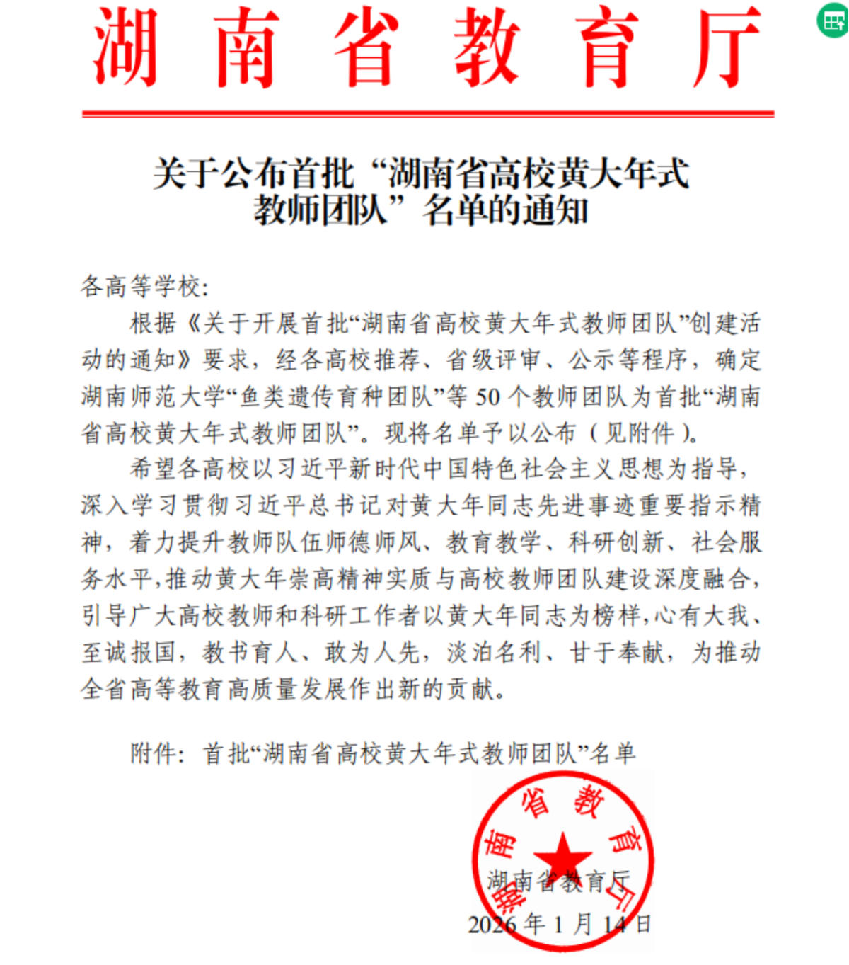 此次入选是对团队长期以来辛勤付出的高度肯定,更是我院落实立德树人根本任务、推进师资队伍建设的重要成果。全院师生要以该团队为榜样,不忘初心、砥砺前行,为学校高质量发展和服务湖南“三高四新”战略贡献更大力量。