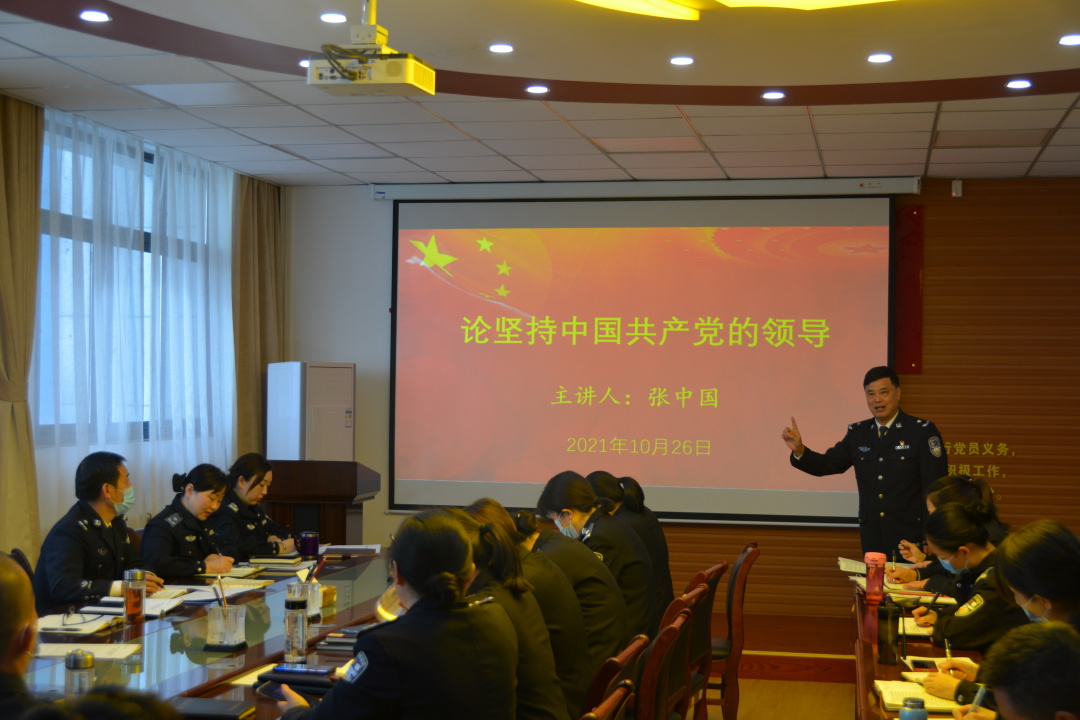 为了使同志们对坚持党的全面领导有更深刻的认识,法律系党总支书记张中国以《论中国共产党的领导》为题上了一堂深刻的党课。张中国从坚持中国共产党领导的基本内涵、基本要求和如何把坚持党的领导贯穿在工作全过程三个方面进行了阐释。指出,坚持中国共产党领导重点是坚持党的政治领导、思想领导和组织领导,三者之间相辅相成,思想领导是先导,政治领导是目标,组织领导是保障。党的领导体现在法律系工作上,就是要贯彻党的教育路线方针政策,落实立德树人根本任务,着力培养政治坚定、素质过硬、德才兼备的社会主义事业的建设者、接班人和捍卫者。