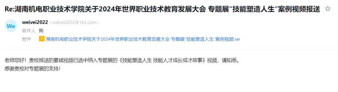 湖南机电职院视频作品入选2024年世界职业技术教育发展大会专题展