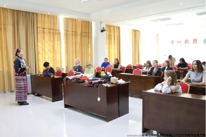 此外,国际学员们还有机会穿上海南黎族的民族服饰,亲身体验非遗技艺的神奇与美妙。他们身着色彩斑斓、图案精美的黎锦服饰,仿佛置身于海南的古老村落之中,感受着那份深厚的文化底蕴和独特的民族风情。这一环节不仅让国际学员们领略了海南非遗黎锦服饰文化的独特魅力,更促进了中外文化的交流与融合。