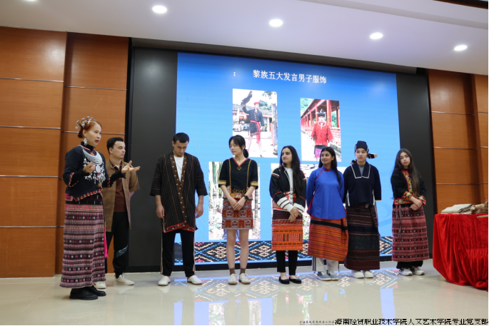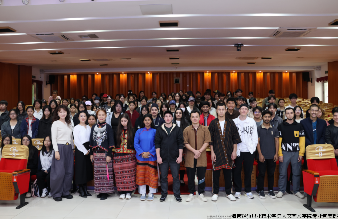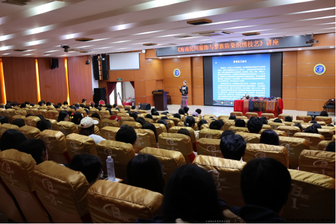 为深化“党建+非遗”融合育人实效,传承弘扬海南本土非遗文化,2025年12月4日,海经贸人艺匠心工作室再度邀请南海工匠、海南省拔尖人才、黎族纺染织绣技艺非遗传承人陈丹老师到校,开展《海南民间服饰与黎族纺染织绣技艺》专题讲座。人文艺术学院服装与服饰设计、文化创意与策划专业师生及国际教育学院留学生共计300余人现场聆听学习,沉浸式感受非遗文化独特魅力。