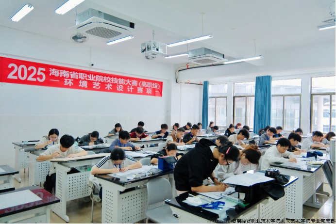 近日,海南省职业院校技能大赛(高职组)环境艺术设计赛项在我校人文艺术学院成功举办,海经贸人艺匠心工作室全程深度参与赛事保障与专业支持,助力赛事高效有序开展。