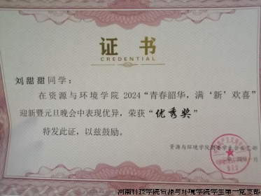 一支部坚持“五育并举”育人理念,注重学子全面发展,通过搭建多元化校园活动平台、完善活动激励机制的独特管理举措,引导学子在实践中提升综合素养。刘甜甜同学积极响应支部号召,主动投身各类校园活动,在丰富课余生活的同时锤炼本领:在元旦晚会中,她凭借出色表现荣获优秀奖,展现了扎实的文艺素养;在校园安全短视频大赛中,她紧扣主题创作优质作品,斩获二等奖,以青春视角传递安全理念。在生活中,她始终秉持节俭朴素的作风,严以律己、宽以待人,尊敬师长、友爱同学,主动与他人沟通交流,积极帮助身边同学,构建了和谐融洽的人际关系,用真诚与善良诠释了新时代大学生的良好风貌,这也正是一支部“全方位育人、精细化管理”理念在学子日常表现中的生动体现。