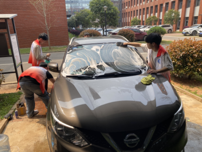 志愿者们分工协作,高效完成车辆内外除尘、玻璃水加注、轮胎花纹深度检测等任务,并耐心解答师生日常用车问题,普及保养常识。面对赞扬,志愿者们深感自豪,进一步坚定了“以专业服务社会”的信念。活动不仅为师生排忧解难,更展现了“湘蓝匠心”品牌的内涵,将雷锋精神的时代价值与职业教育的社会责任紧密结合。