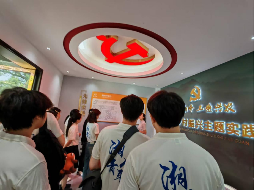 在湘峰村乡村振兴主题实践馆,师生们进行了一场沉浸式学习。一幅幅展板、一件件实物,生动勾勒出党建引领下湘峰村在产业兴旺、生态宜居、乡风文明、治理有效、生活富裕道路上迈出的坚实步伐。队员们认真聆听村委领导讲解,深切体会到党的惠民政策如何在这片土地上落地生根、开花结果,为后续实践注入了强大的精神动力。