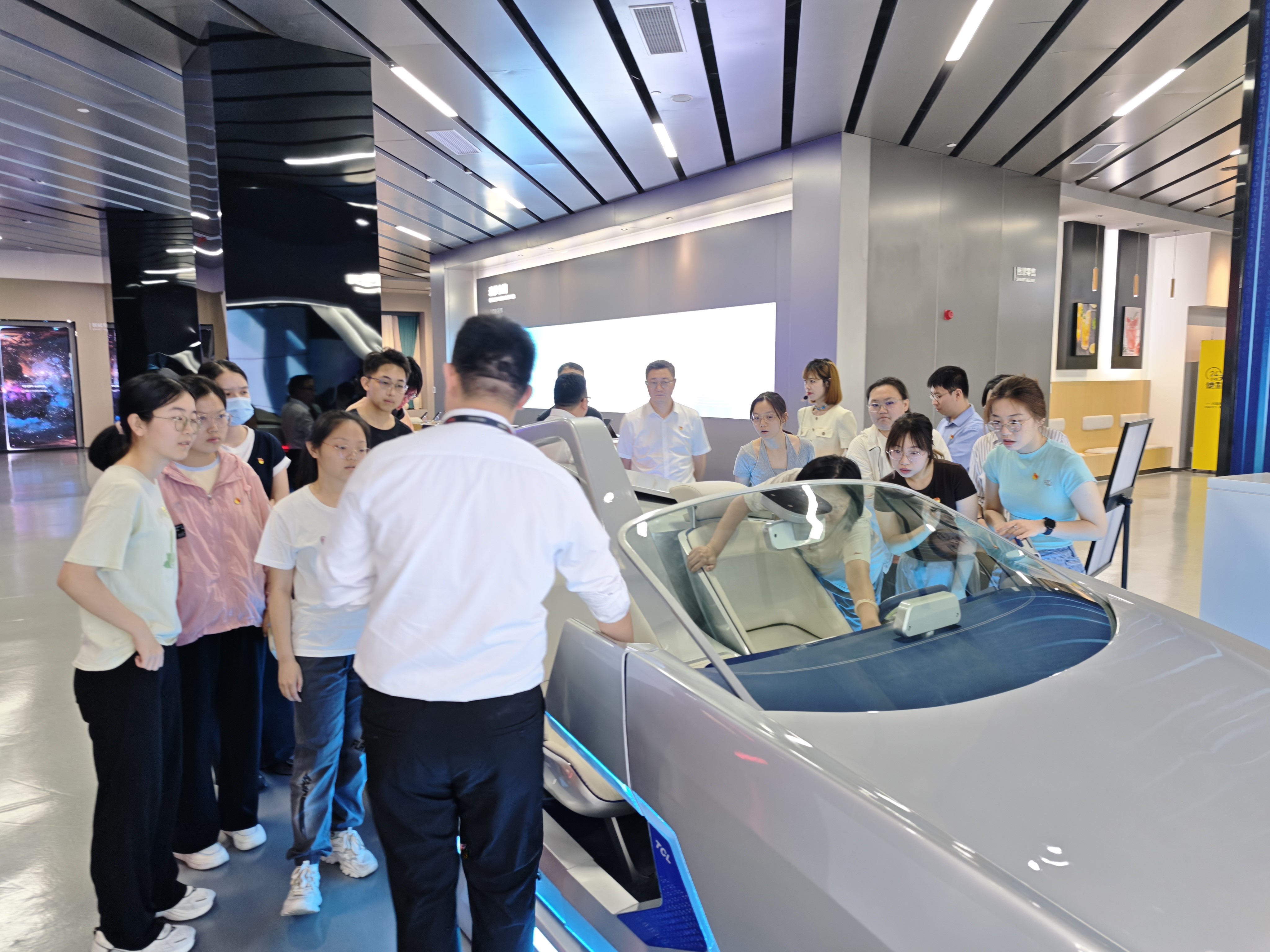 师生党员一行首先参观了极具科技感的“屏宇宙”展厅。通过近距离接触从柔性OLED到超大尺寸Mini LED等一系列前沿显示技术,材料学院师生深切感受到了创新成果的独特魅力。TCL华星所展现的强大自主创新实力及勇担国家战略科技力量使命的责任感赢得师生们的高度赞誉。